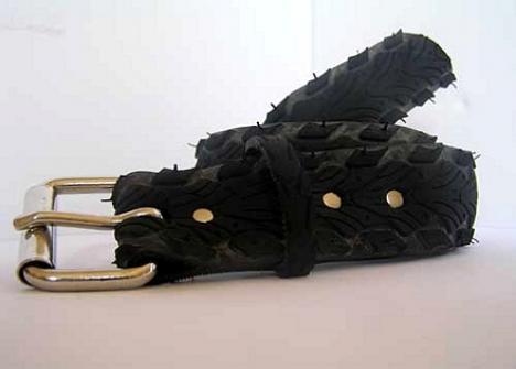 Above: A surprisingly passable belt, crafted from an old bicycle tyre. It was designed by Lisa McCartney of Creative Problem Solvers, an innovative company based in Leicester who "use old bicycle parts to produce stylish, functional individual products to be worn or used around the home".